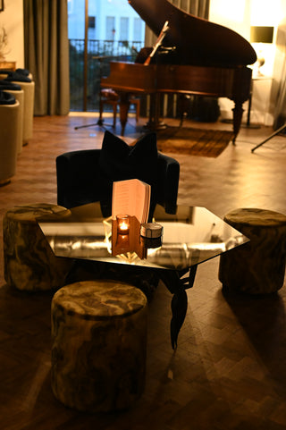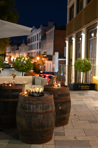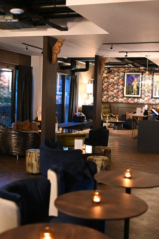 Our venue comfortably accommodates up to 165 guests, spanning our charming terrace, cozy café bar, and the stunning private club space and bar. Inside, you'll discover an eclectic array of treasures: 18th-century fabrics, mid-century chairs from the 1950s, World War II artifacts, and even a baby grand piano from the Titanic era of 1912. This unique blend of exquisite art and ornaments creates a sanctuary unlike any other in Tunbridge Wells